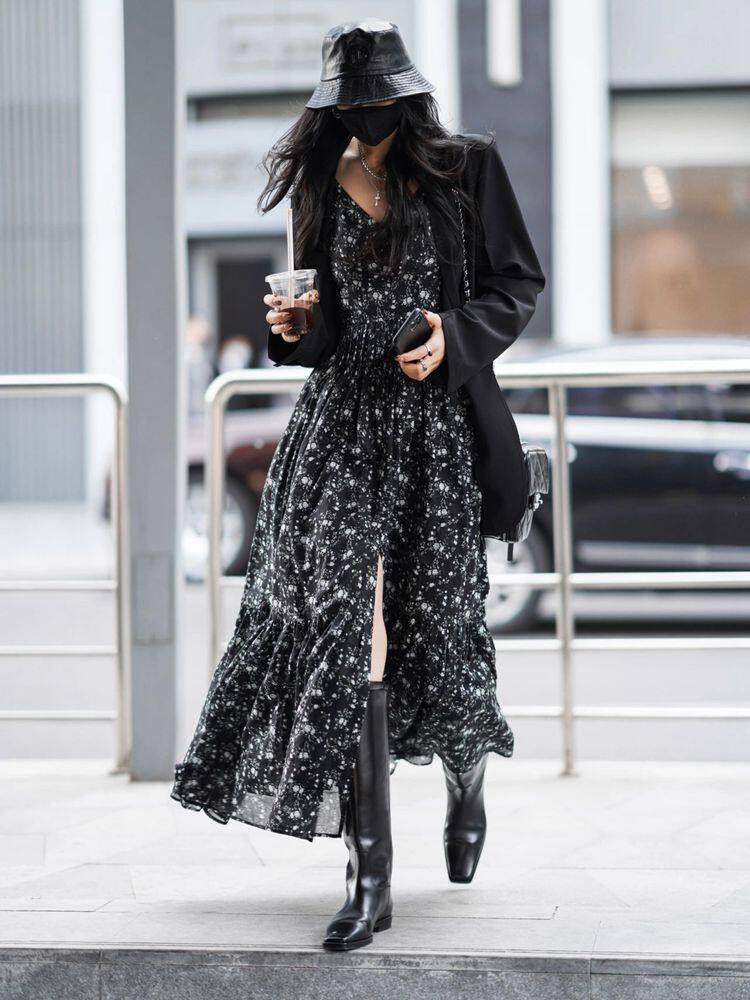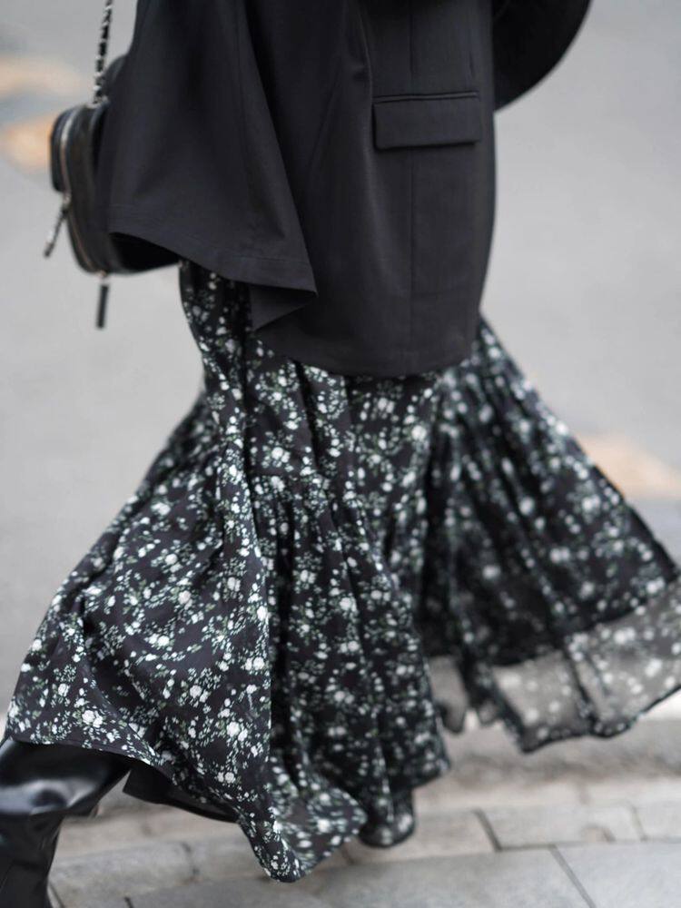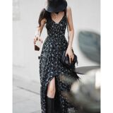 Летняя пляжная сексуальная черная длинная юбка, платье, премиум класс, цветочный принт, французский стиль