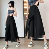 Тонкий шифоновый комплект, юбка, штаны, большой размер, свободный крой, эластичная талия