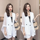 Летний универсальный комплект, шифоновый пиджак классического кроя, оверсайз, большой размер, по фигуре