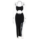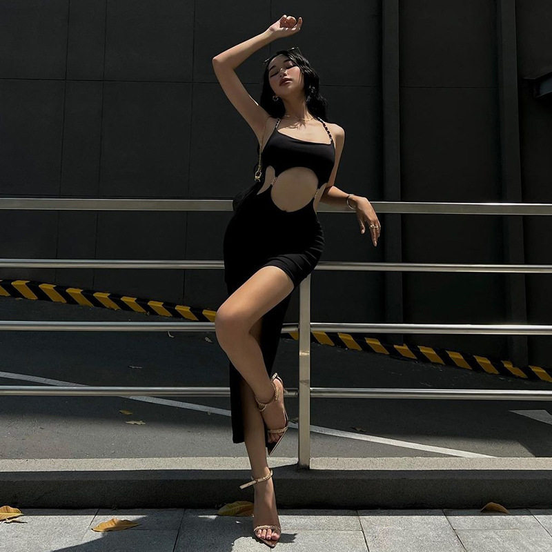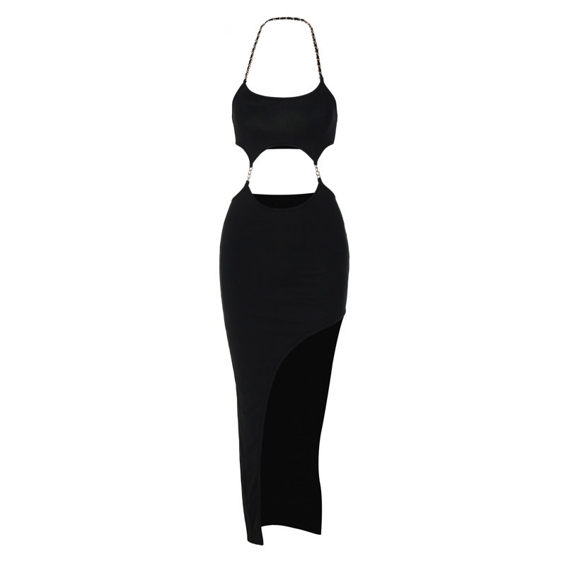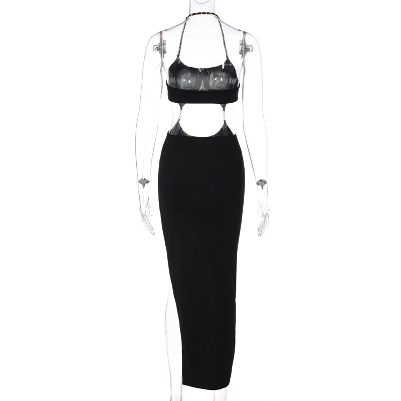 Дизайнерское платье с рукавами без рукавов, цепь, сексуальная длинная юбка, европейский стиль, тренд сезона