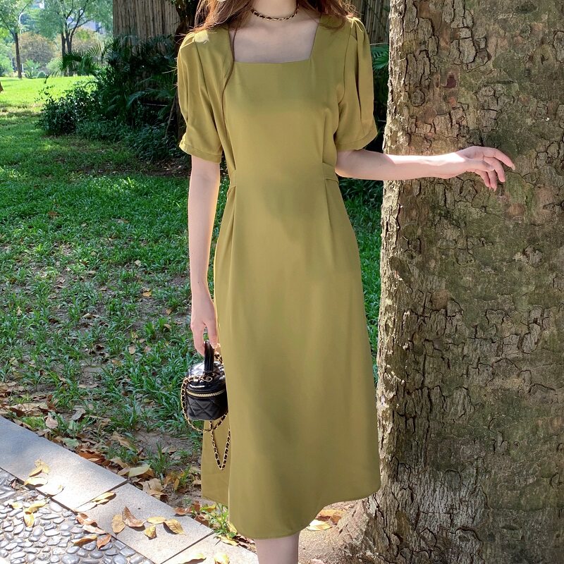Дизайнерское летнее платье с коротким рукавом, приталенный корсет, длинная юбка, большой размер, квадратный вырез, тренд сезона