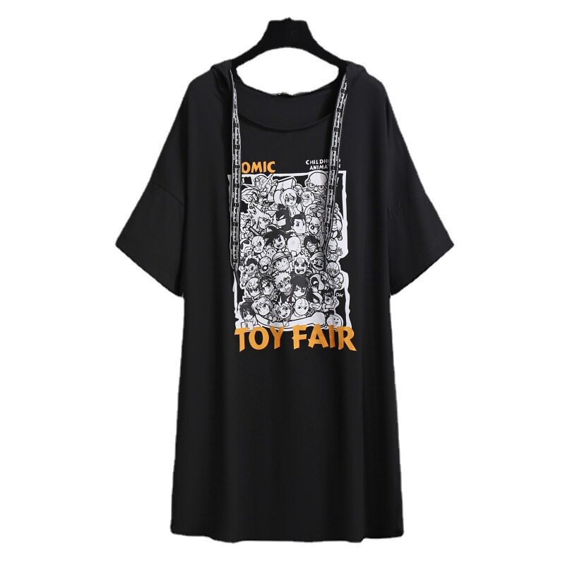 200 фунтов 300, очень большой размер, женский летний толстый мм, топ, закрывающий живот, утягивающая свободная футболка с капюшоном, юбка, 350, рубашка «летучая мышь»