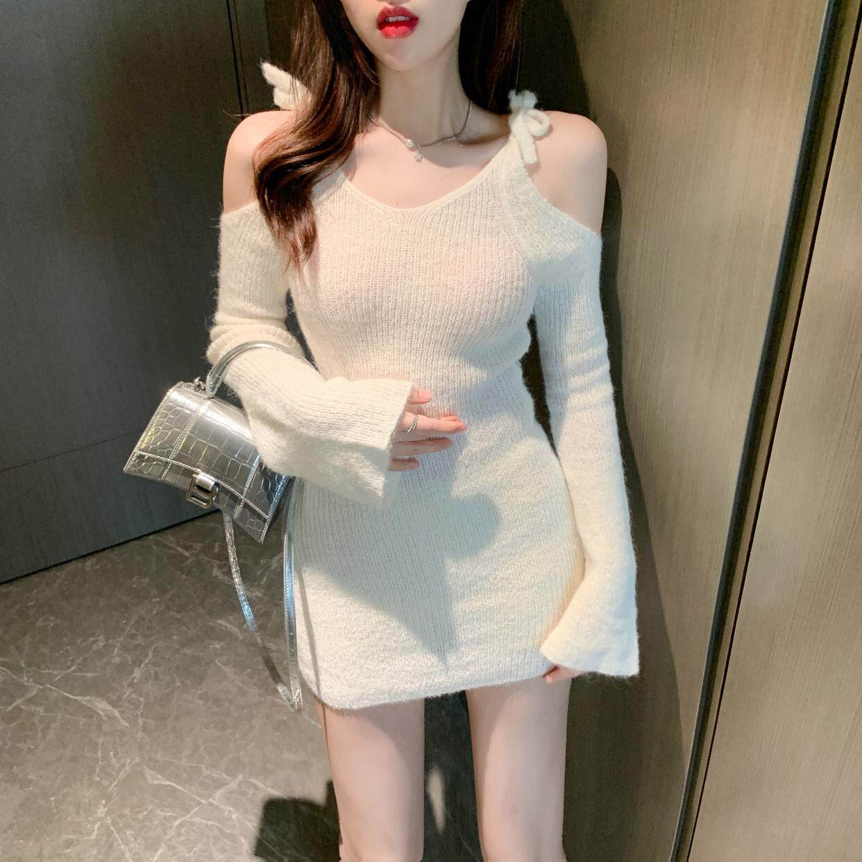 Сексуальное базовое демисезонное розовое трикотажное платье, изысканный стиль, V-образный вырез, с акцентом на бедрах