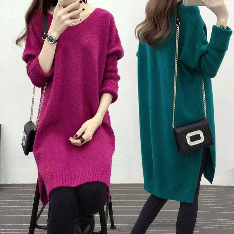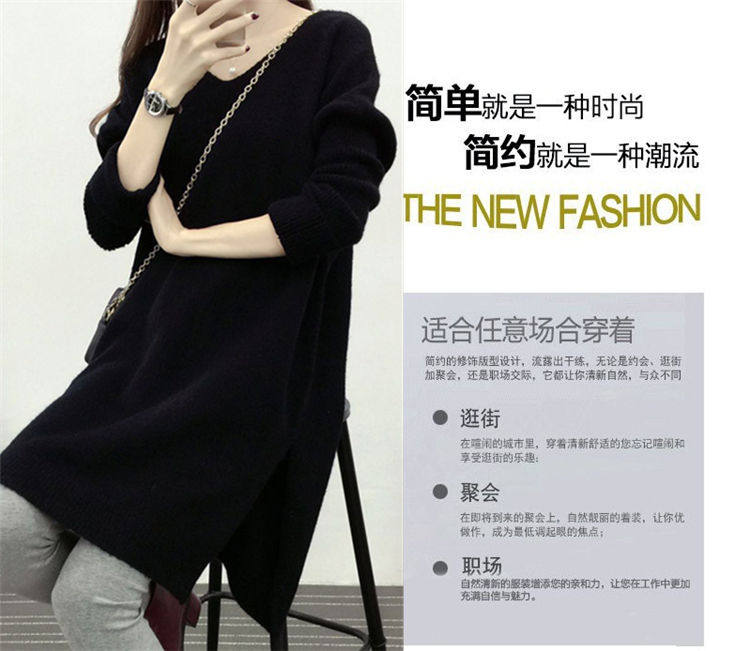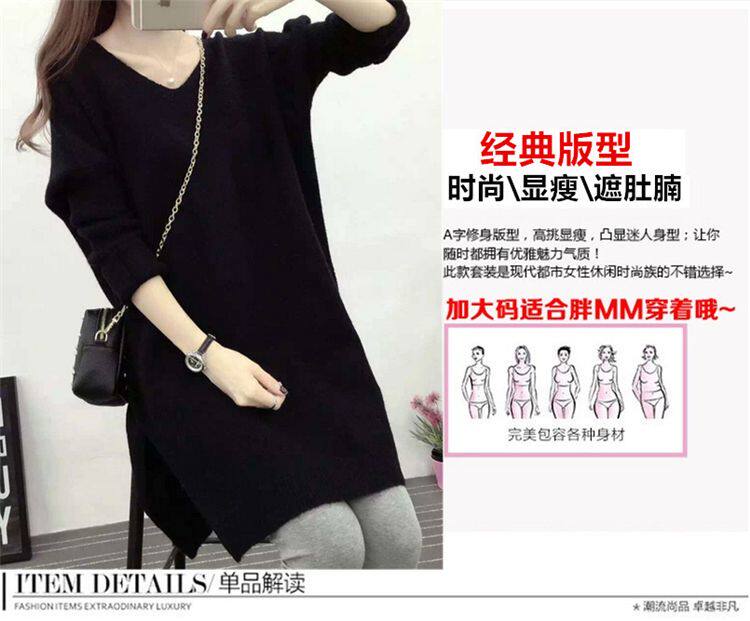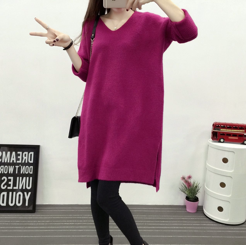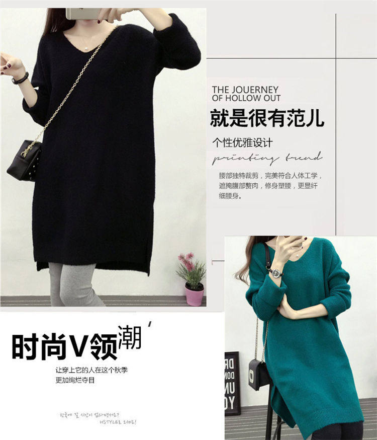 Демисезонный длинный трикотажный свитер, куртка, большой размер, в корейском стиле, V-образный вырез, оверсайз, средней длины