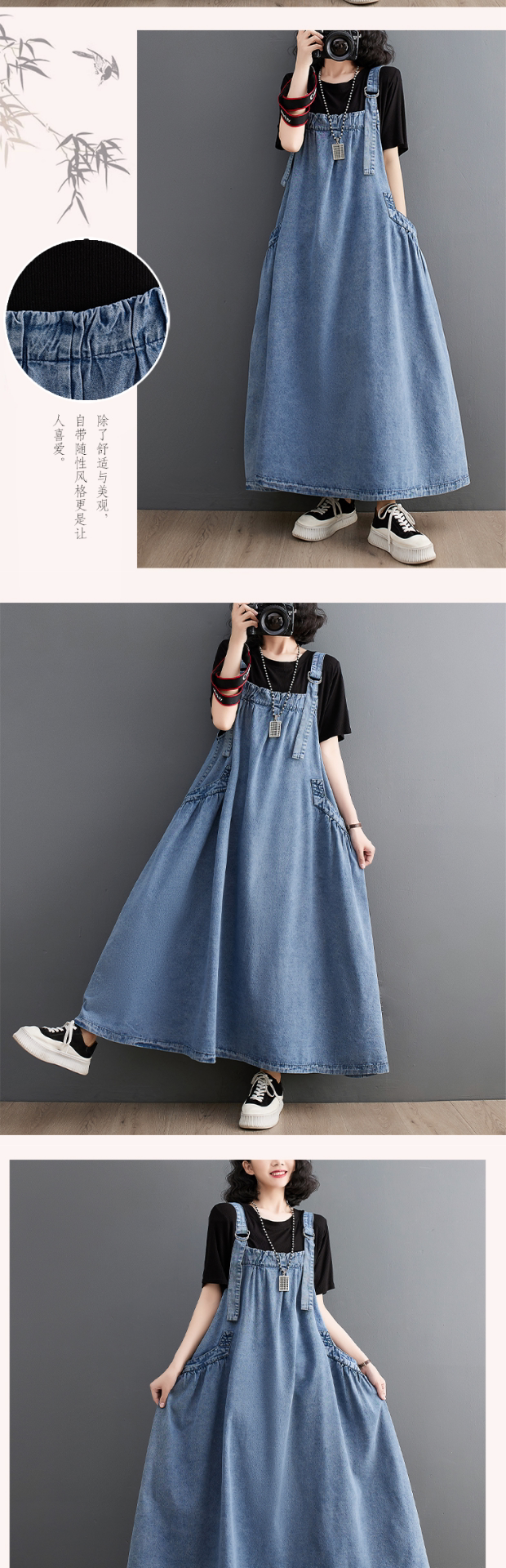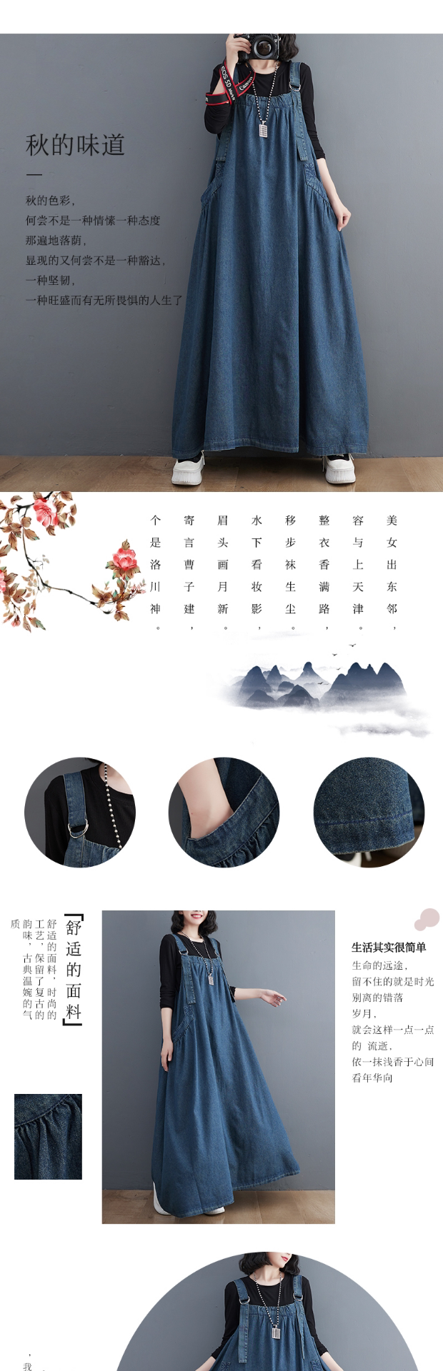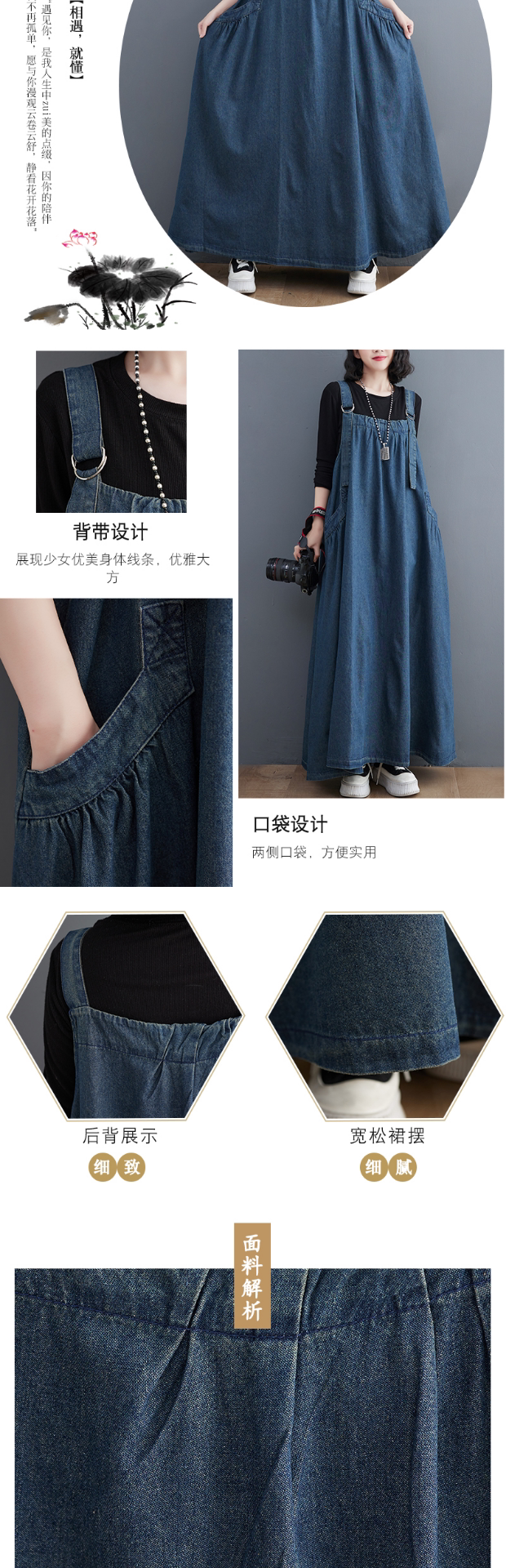 Осенний джинсовый сарафан, юбка, платье, большой размер, в западном стиле, свободный крой