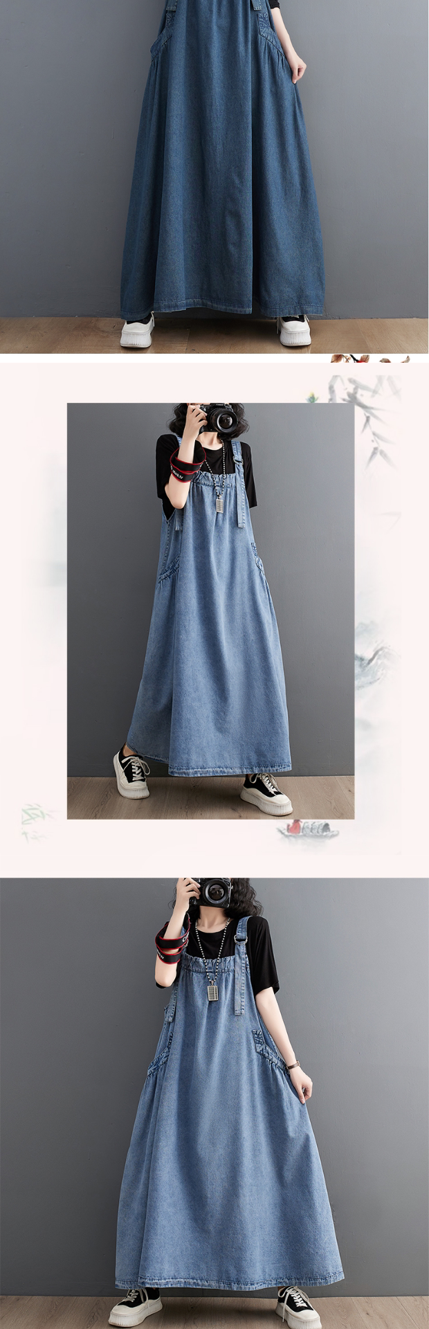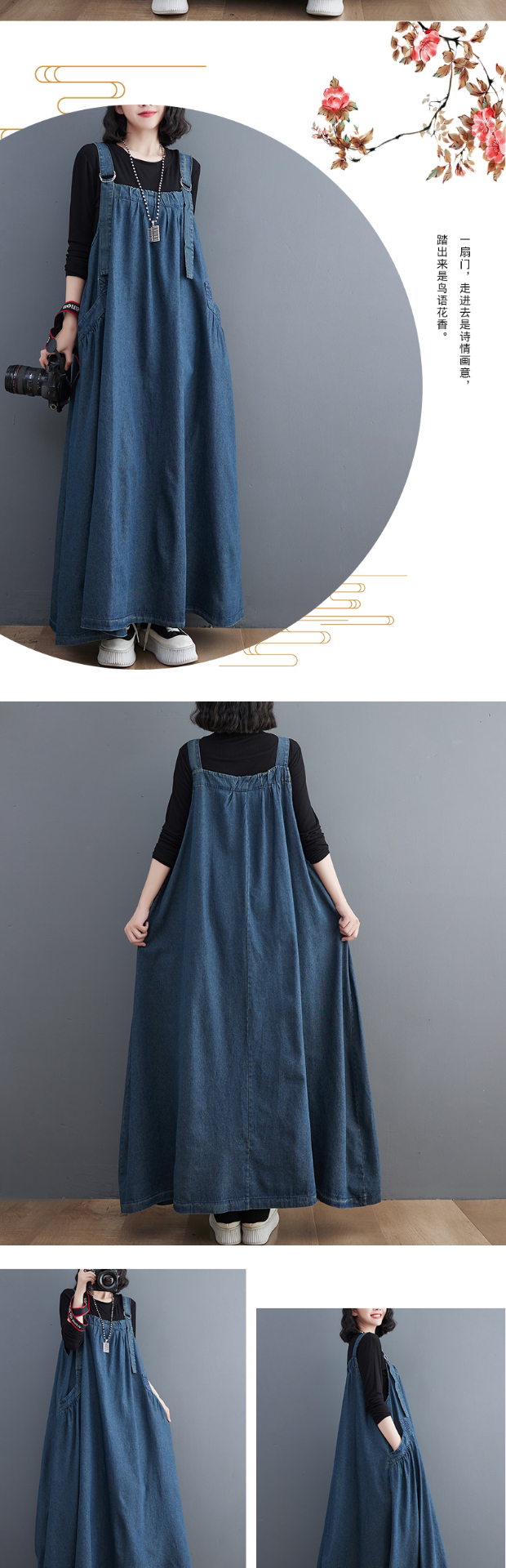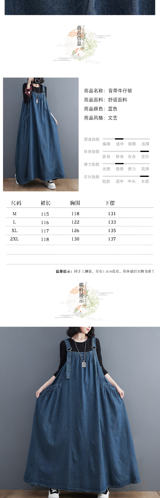Осенний джинсовый сарафан, юбка, платье, большой размер, в западном стиле, свободный крой