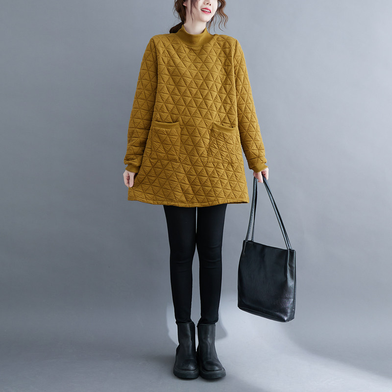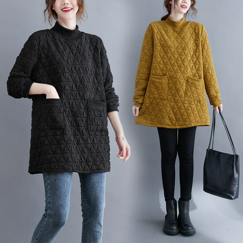 Осенняя демисезонная ретро длинная толстовка с ромбовидным узором, стеганая куртка, большой размер, средней длины, увеличенная толщина