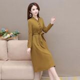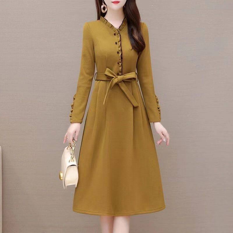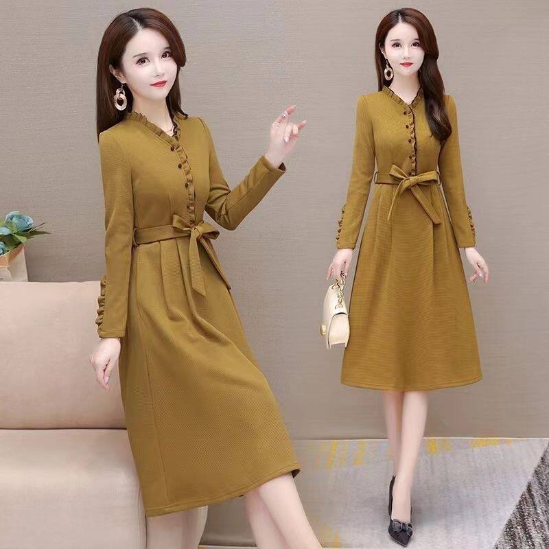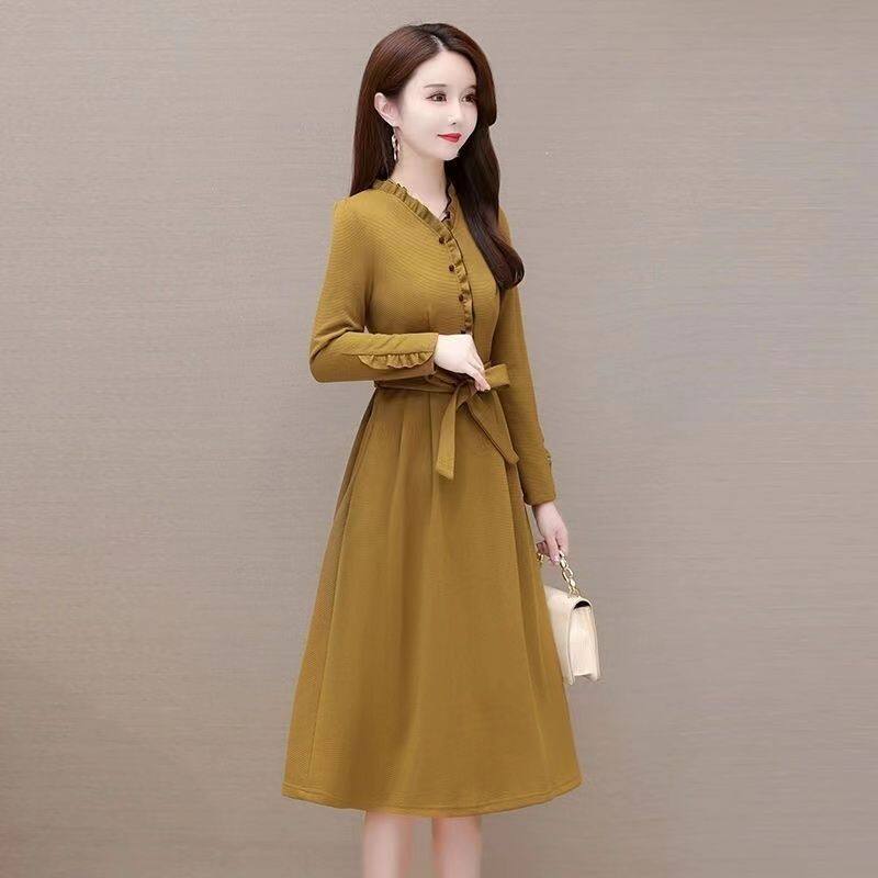 Зимнее платье, длинная юбка, коллекция 2023, осеннее, подходит для подростков, увеличенная толщина, средней длины, А-силуэт