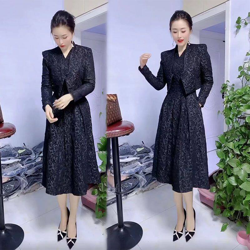 Платье, осенний комплект, в западном стиле, яркий броский стиль