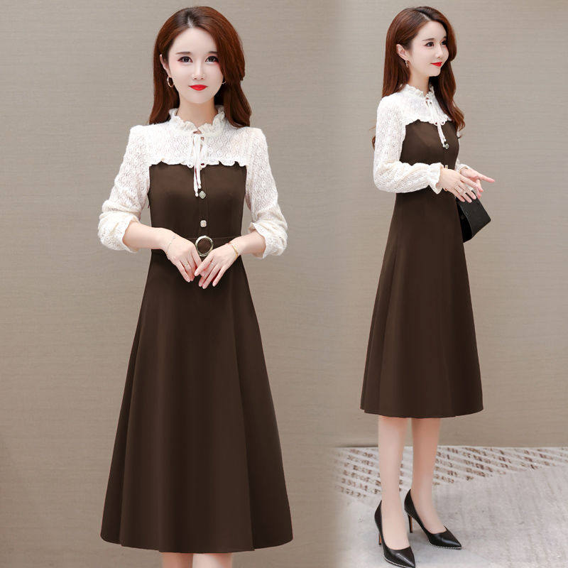 Кружевное осеннее платье, длинный комплект, юбка, 2024 года, в корейском стиле, А-силуэт