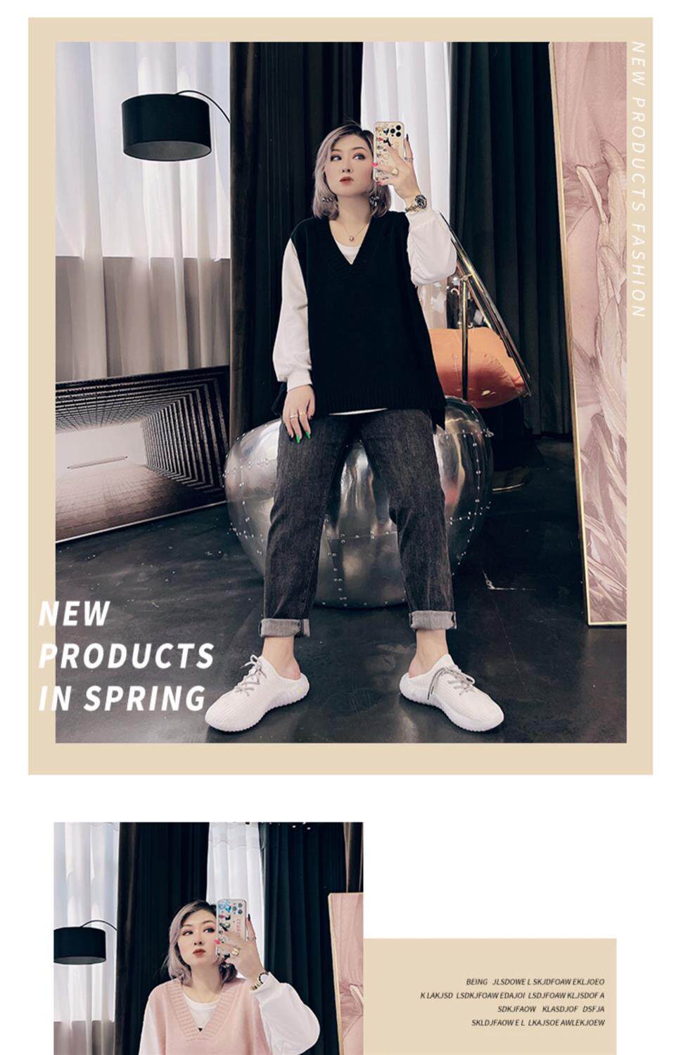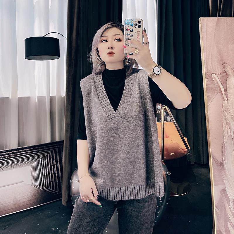 Весенний модный трикотажный жилет, куртка, большой размер, свободный крой, V-образный вырез