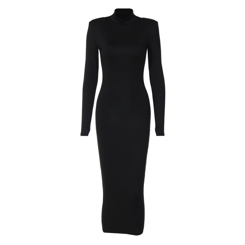 Сплошное платье с длинным рукавом с высокой шеей