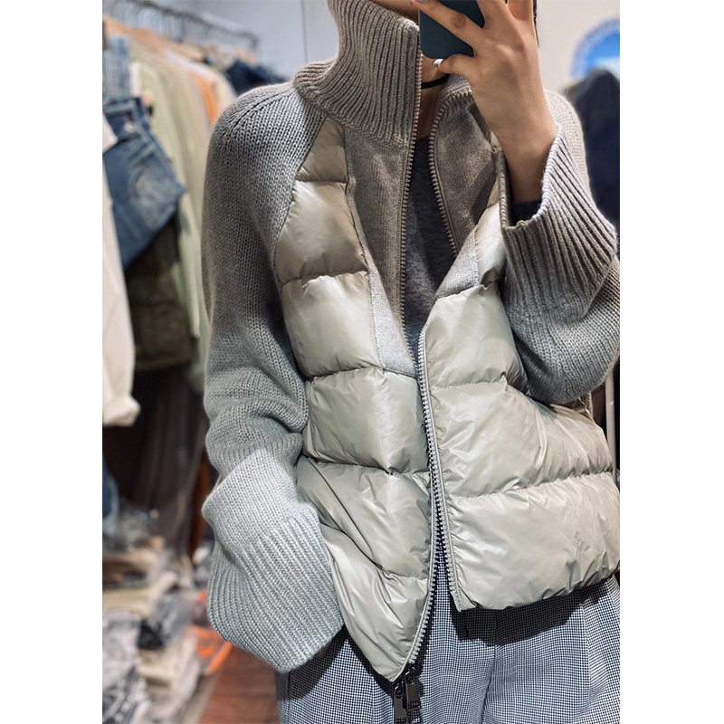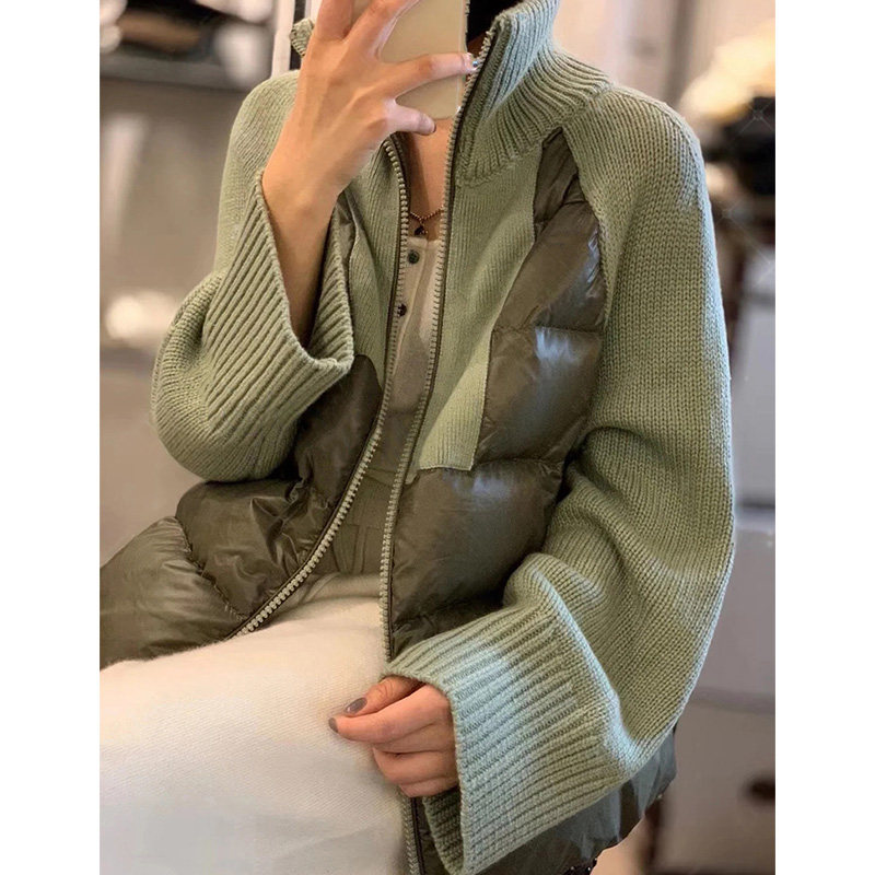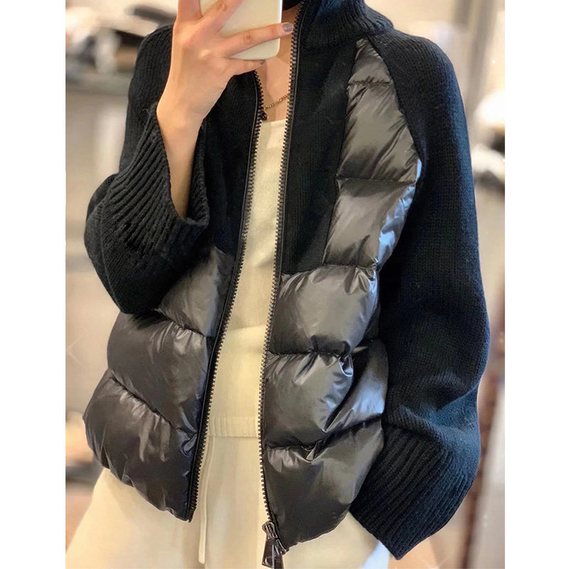 Брендовый кашемировый короткий свитер, пуховик с молнией, бархатная куртка, гусиный пух