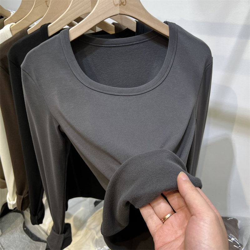 Бархатный демисезонный приталенный флисовый базовый приятный телу лонгслив, квадратный вырез