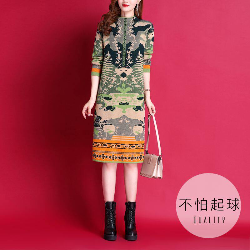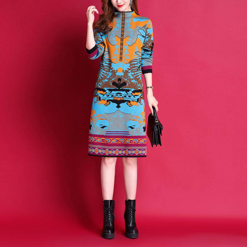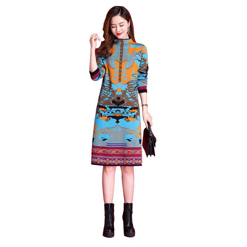 Шерстяное демисезонное трикотажное платье, лонгслив, свитер, юбка, городской стиль, высокий воротник, оверсайз
