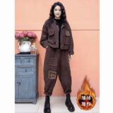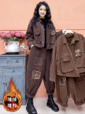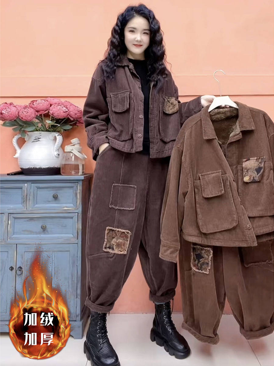 Утепленный вельветовый удерживающий тепло демисезонный комплект, высококлассная ретро куртка в стиле древности, пластырь, штаны