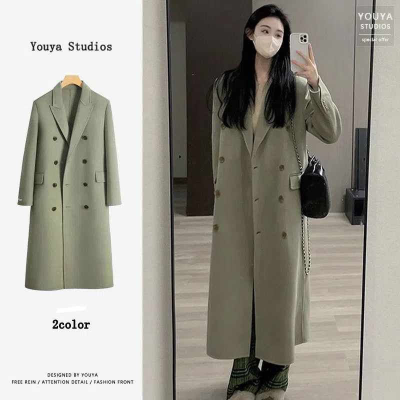 Шерстяное пальто, куртка, матча, французский стиль, в корейском стиле, оверсайз, увеличенная толщина