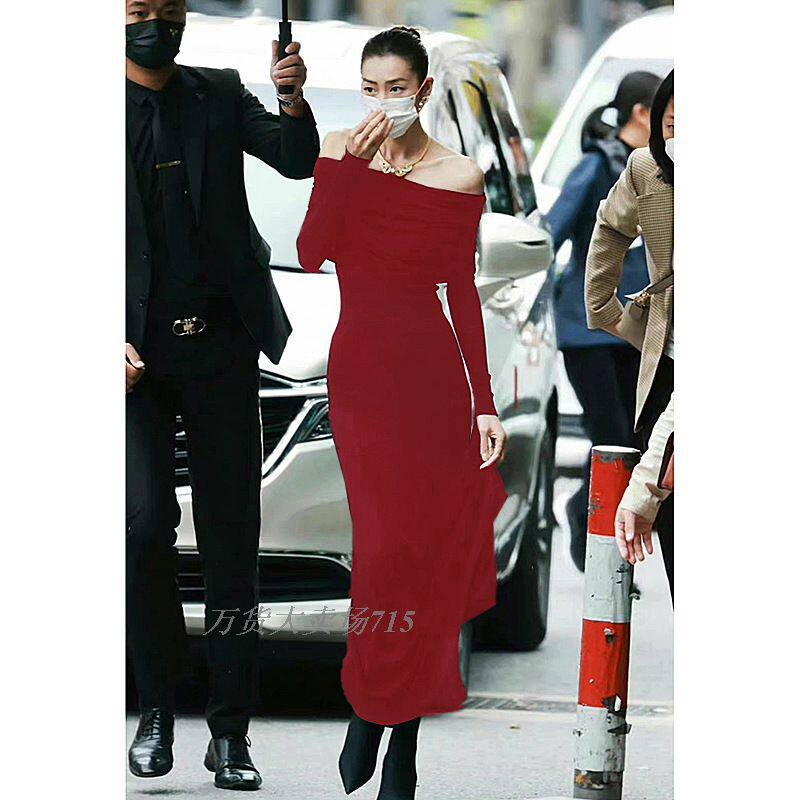 Платье с рыбным хвостом с длинными рукавами вязаное длинно -печи с длинным рыбным хвостом длинное платье