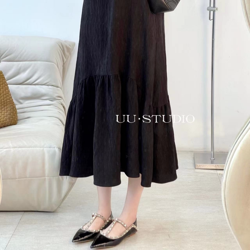 Летнее платье, однотонная длинная юбка, большой размер, французский стиль, свободный крой, яркий броский стиль