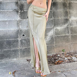Шнурная атласная юбка длинная стройная слот Skopper Skopper Tie Женщины женщин женщин