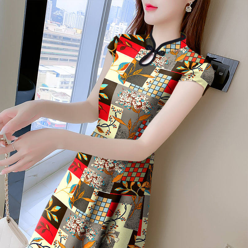 Длинное ципао, летнее платье, базовый корсет, длинная юбка, средней длины, в западном стиле