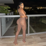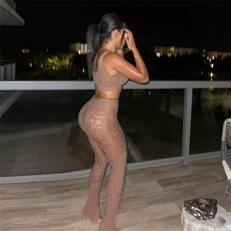 Получить повседневные брюки, установленные открытыми пупок с высокой талией Полые брюки.