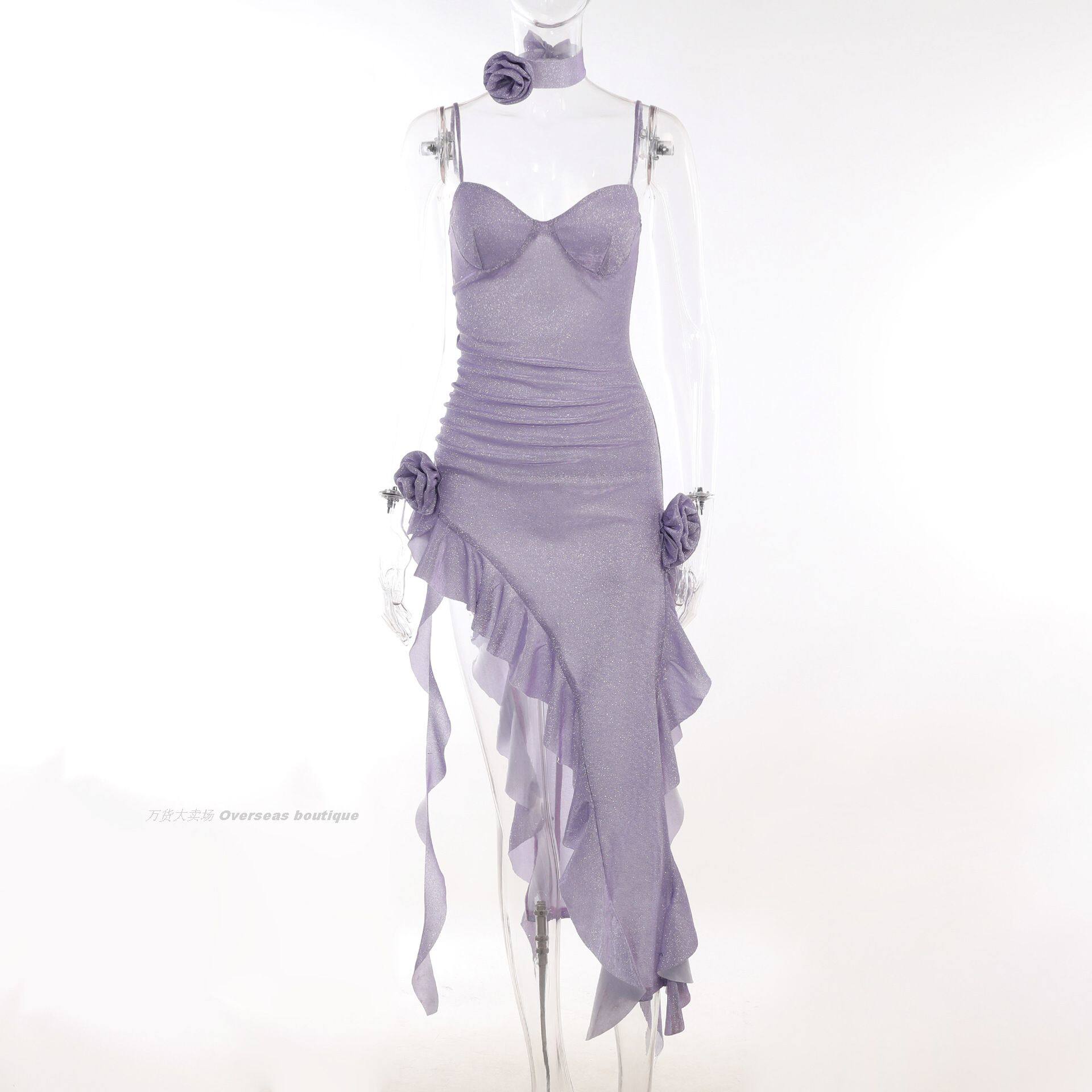 Женский ремешок с разделением платья Delssy Deak Fold Flower Flower Flucked Droty Women