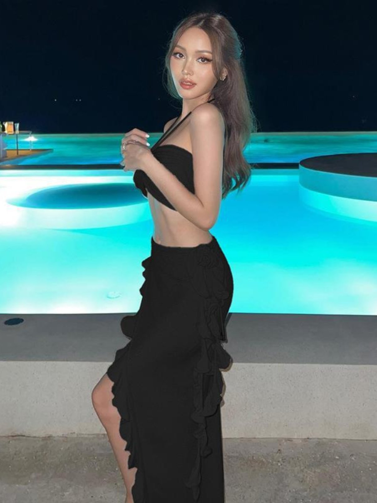 Подвесная шейная половина юбки набор флеш -факультура, висящая рядом с юбкой Halfar Set Women