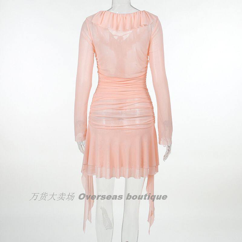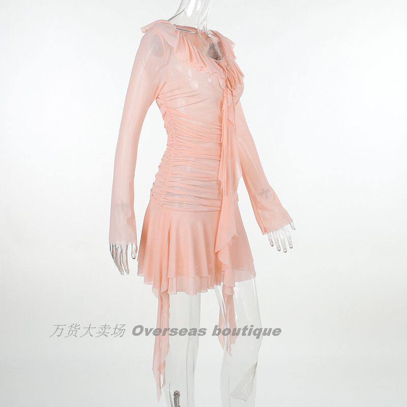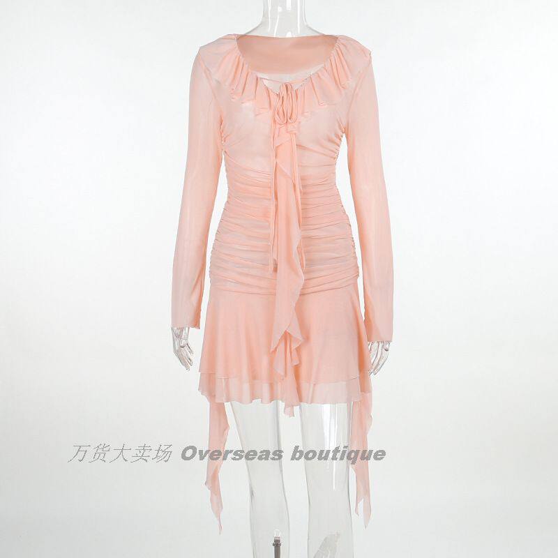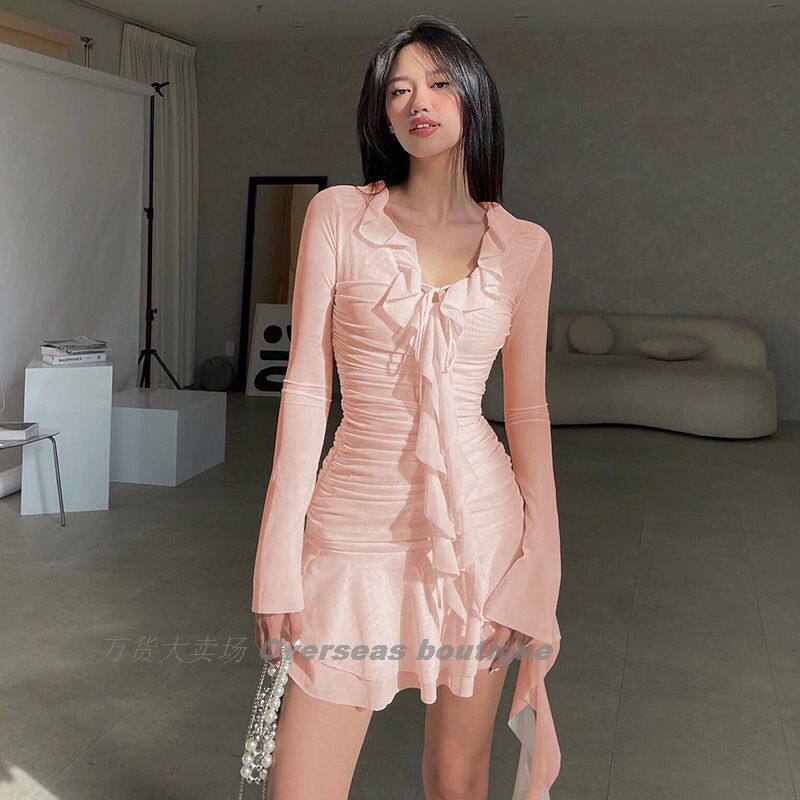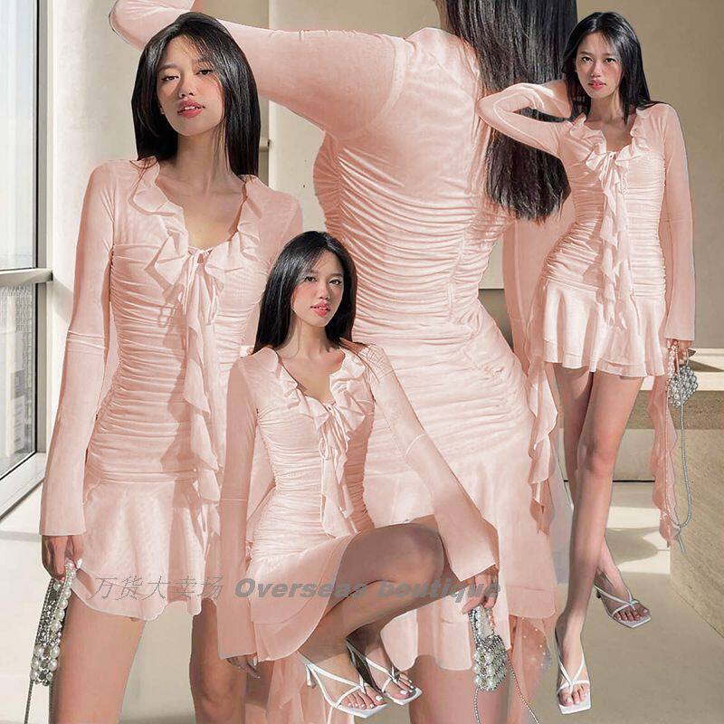 Платье с длинным рукавом пленка лента лента выдвижной плиссированный платье с длинным -шар