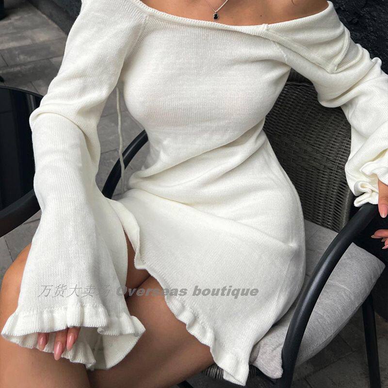 Flare с длинными рукавами короткая юбка шерстяная шерстяная шерстя