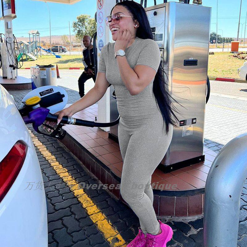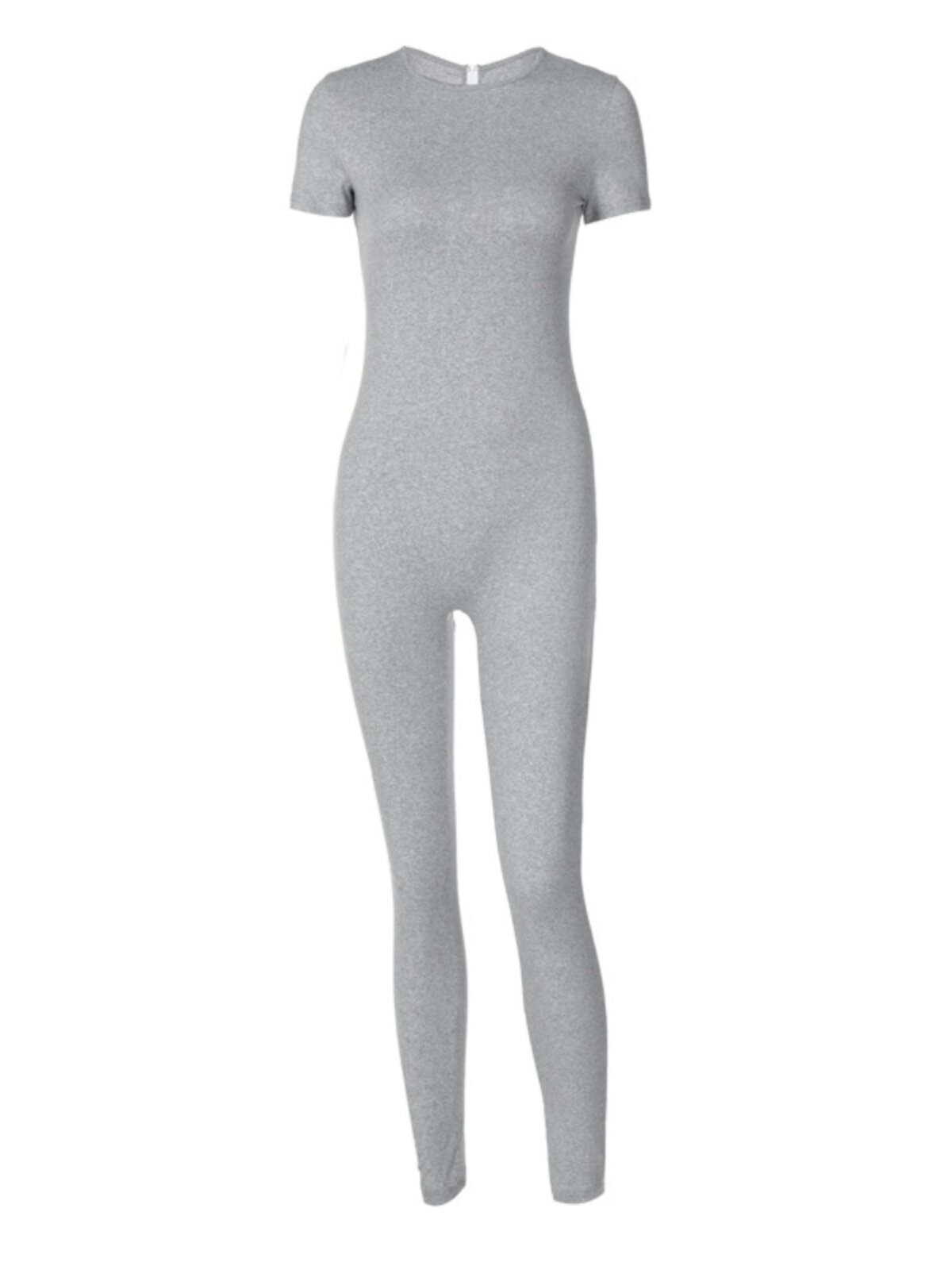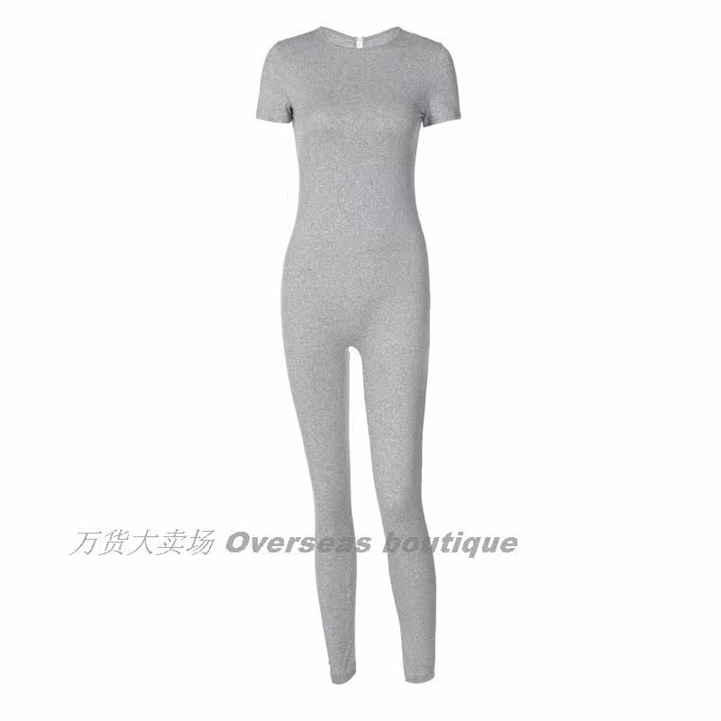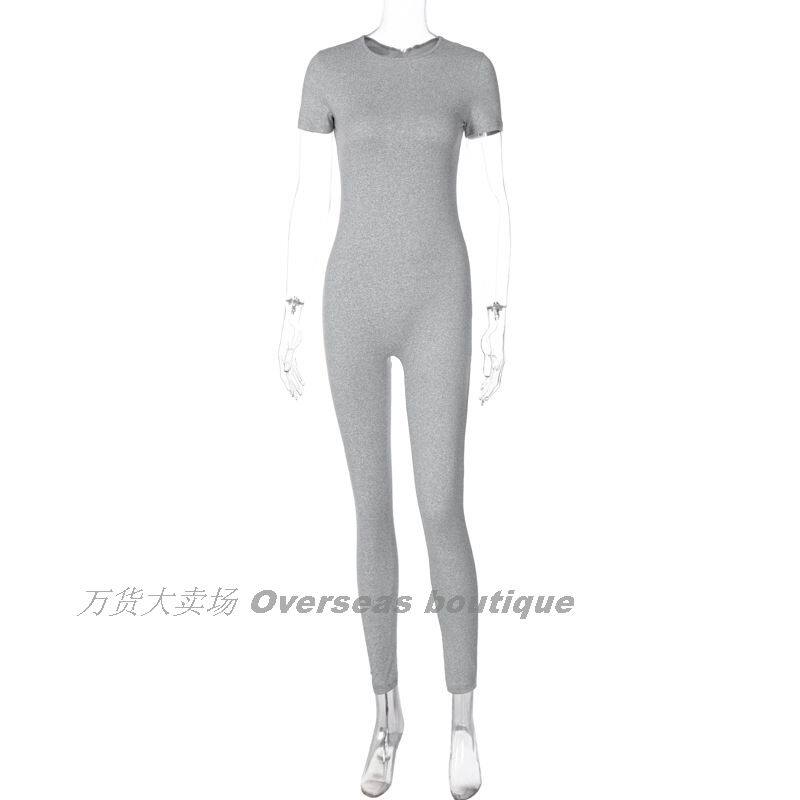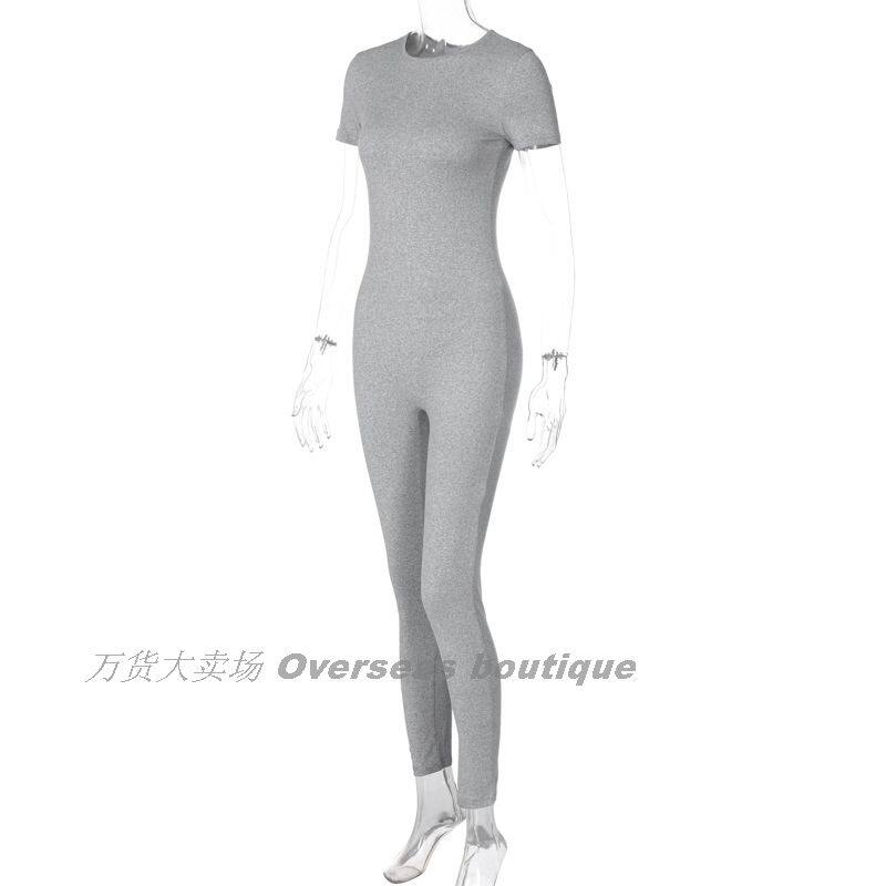 Комбинезон с круглым воротником с молнией, однотонные штаны, короткий рукав