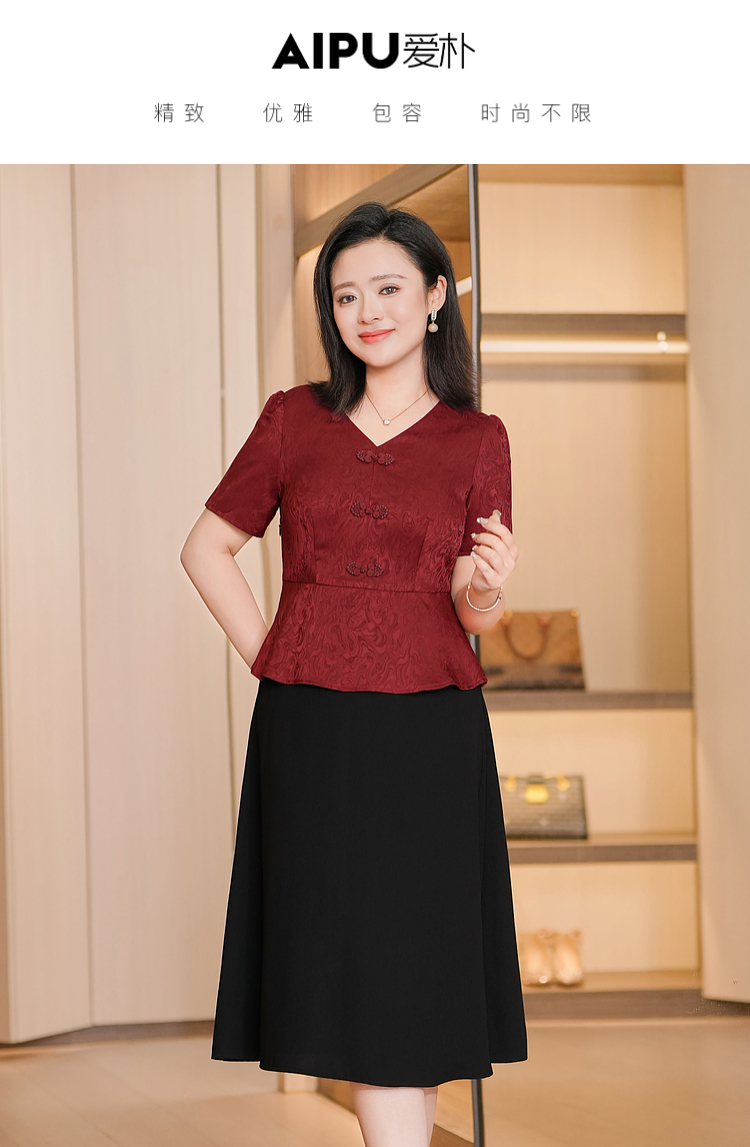 Летнее платье, комплект, большой размер, китайский стиль, яркий броский стиль, V-образный вырез