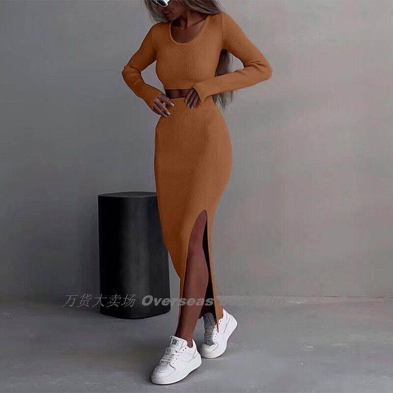 Сплит длинная юбка с двумя частями для женщин с двумя рукавами