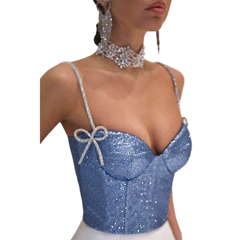 Сверкающий майку -майку с камизолом с удушением топ -девушки с стройной подгонкой
