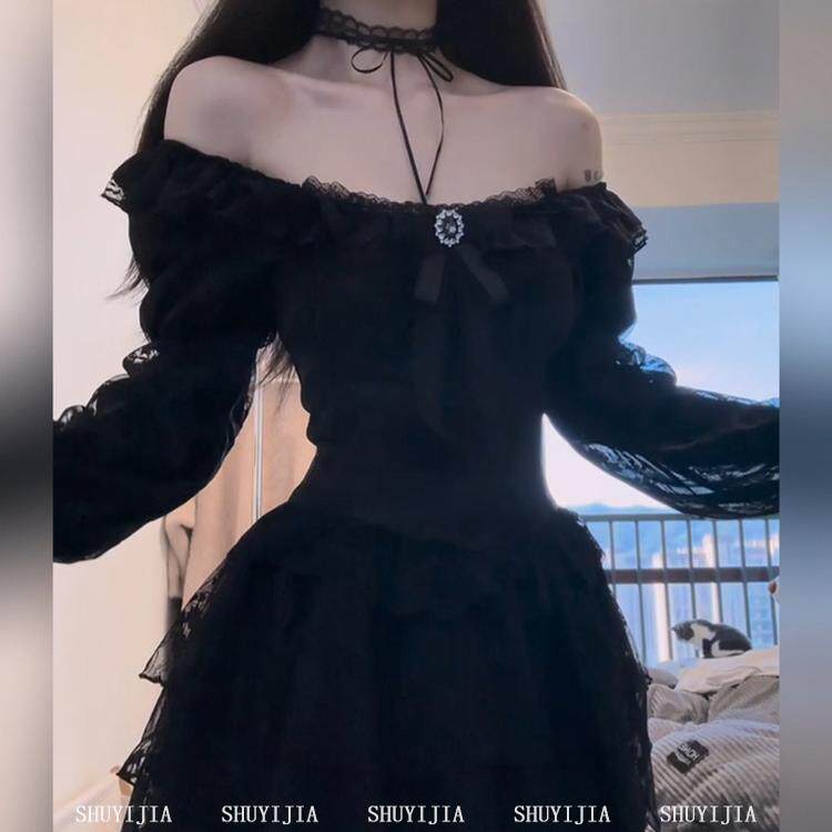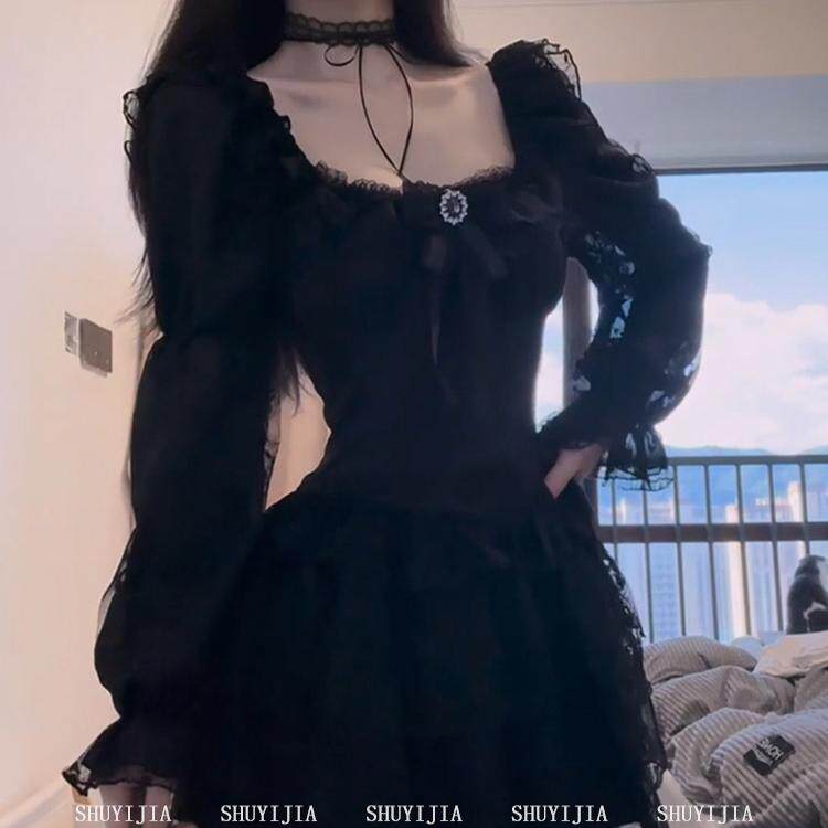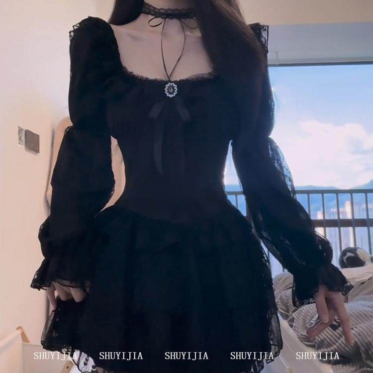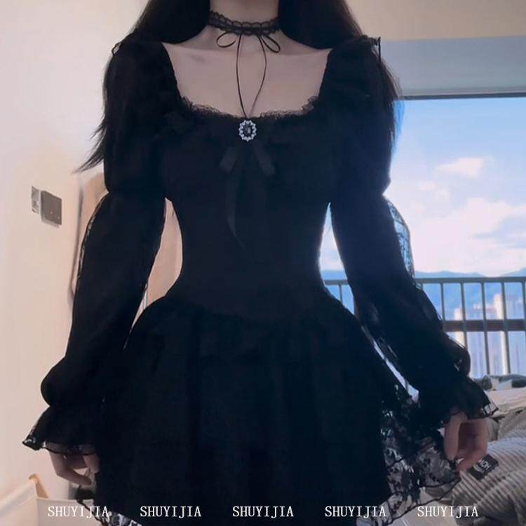 SYJ/Shuyijia платье с длинными рукавами во французском стиле для полных девушек с чистой жаждой горячих девушек, пышная короткая юбка, стягивающая талию