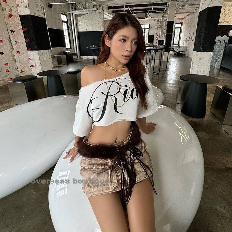Свободный отпечаток с короткими рукавами для женского наклонного воротника с короткими рукавами для женщин для женщин