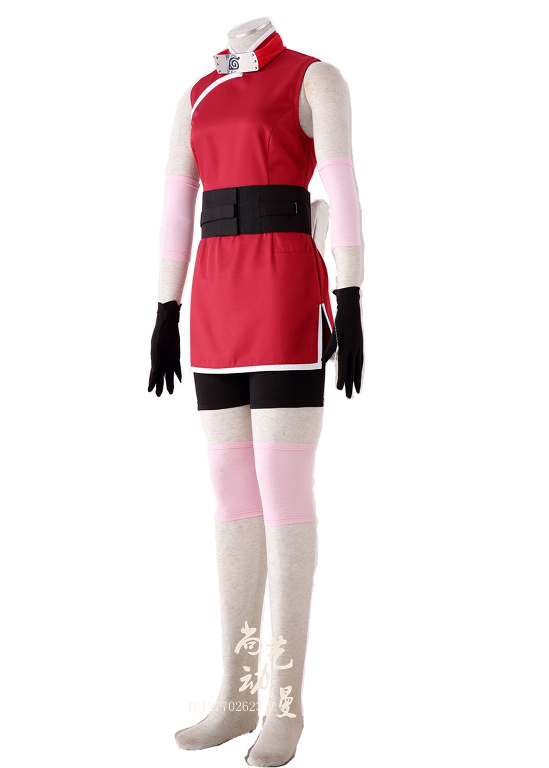 Женский набор из 8 -цепи: без рукавов Cheongsam, печать талии, большая сумка для талии, резиновые шорты, полосы листьев красного дерева, локвы X2, перчатка X2, колено с.