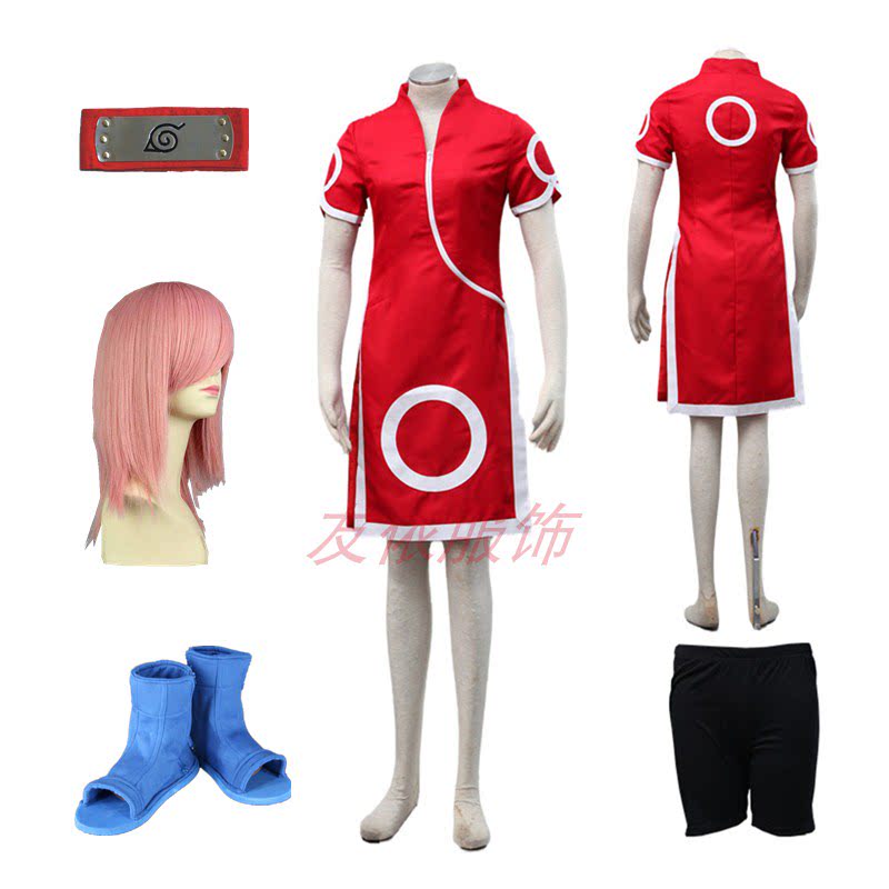 Наруто, красное ципао, косплей, полный комплект