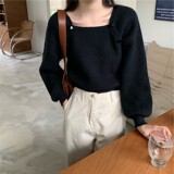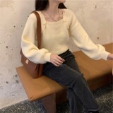 Лонгслив, демисезонный дизайнерский свитер, 2020 года, городской стиль, квадратный вырез, тренд сезона