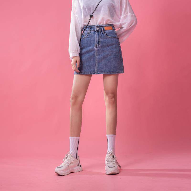 Асимметричная наклейка на талию, летняя эластичная джинсовая юбка, высокая талия, А-силуэт, сезон 2021, с акцентом на бедрах