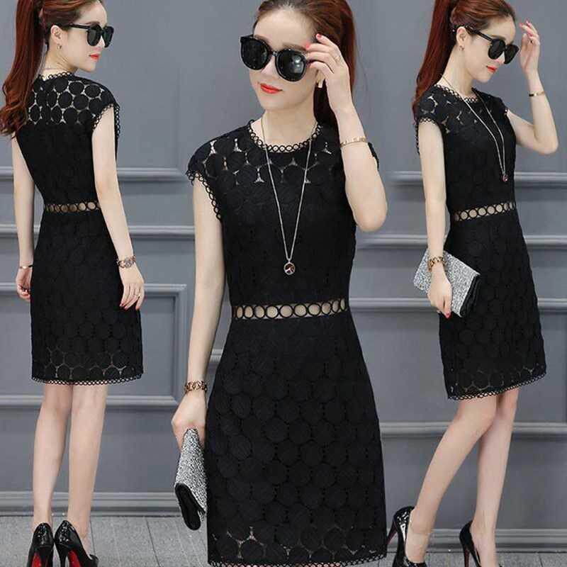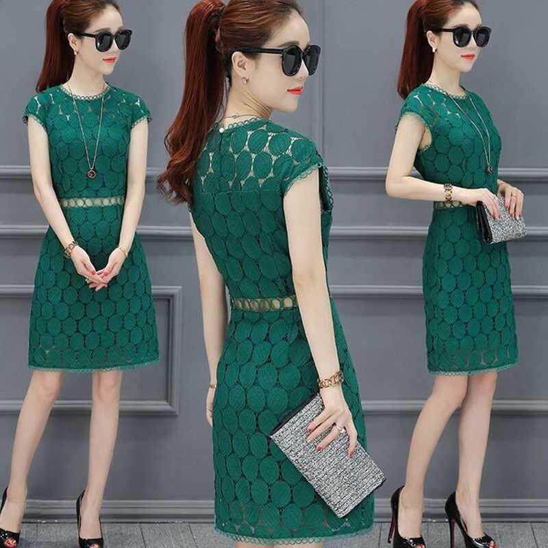 Сексуальное кружевное длинное летнее платье, короткий рукав, средней длины, 2020, городской стиль