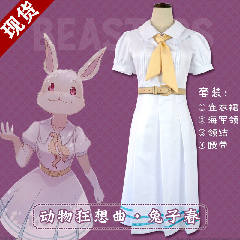 Кролик, униформа, белый комплект, платье, косплей