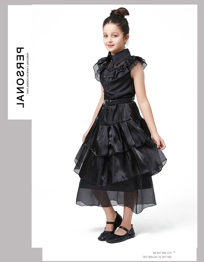 Хэллоуин Среда косплей костюм Семья Аддамс черное платье Среда в том же стиле