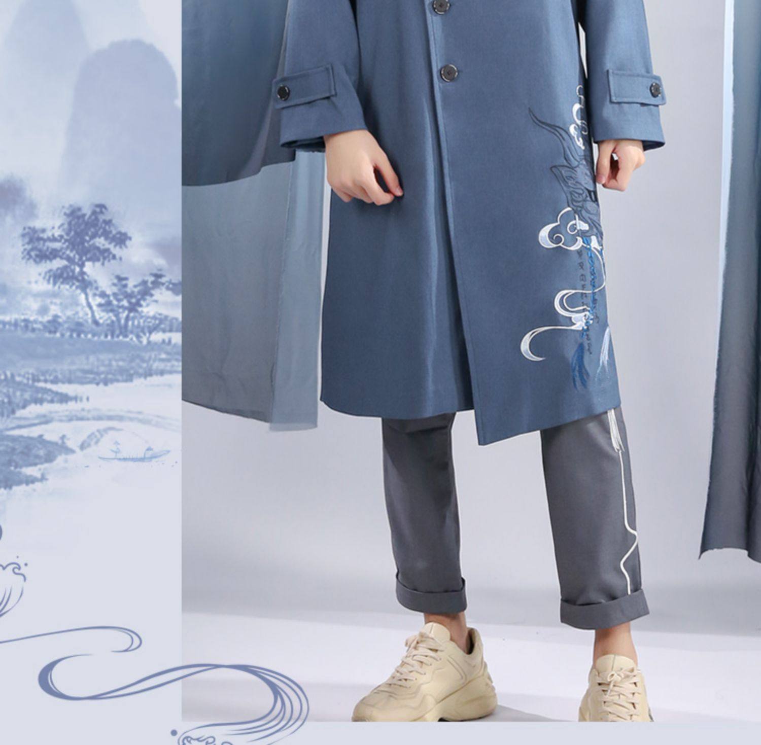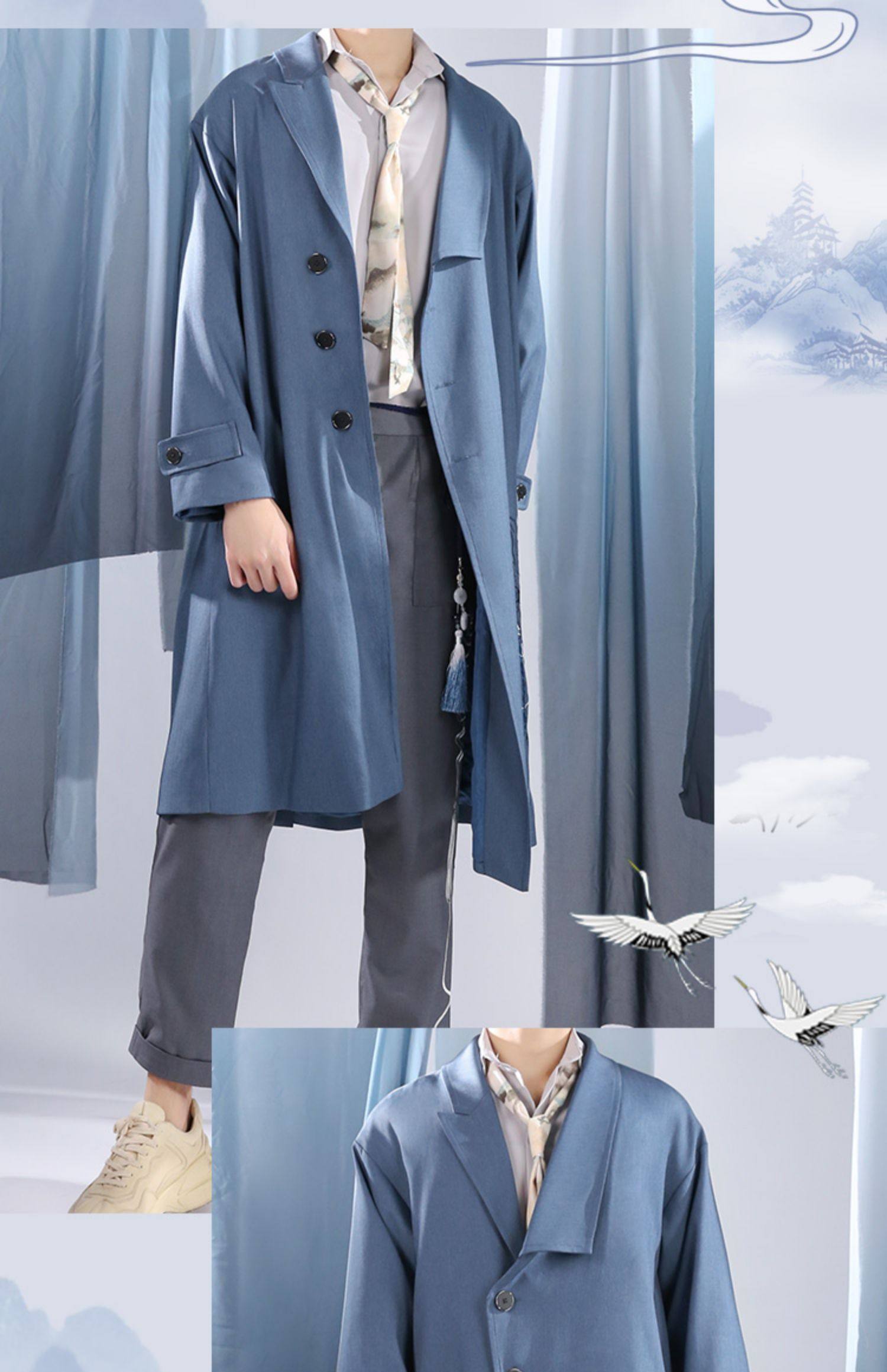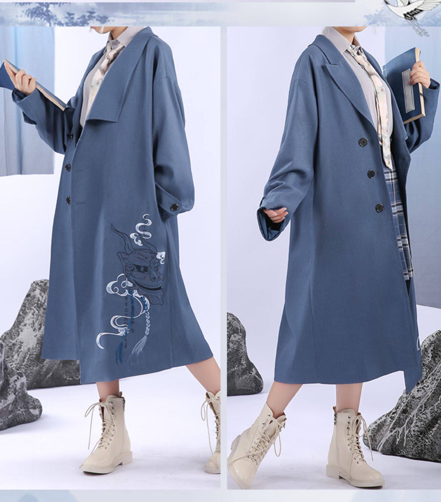 Подлинная трехсторонняя заблуждение, музыкальная песня музыка часто получает окружающий аниме -набор элементов золотых струн, длинная куртка
