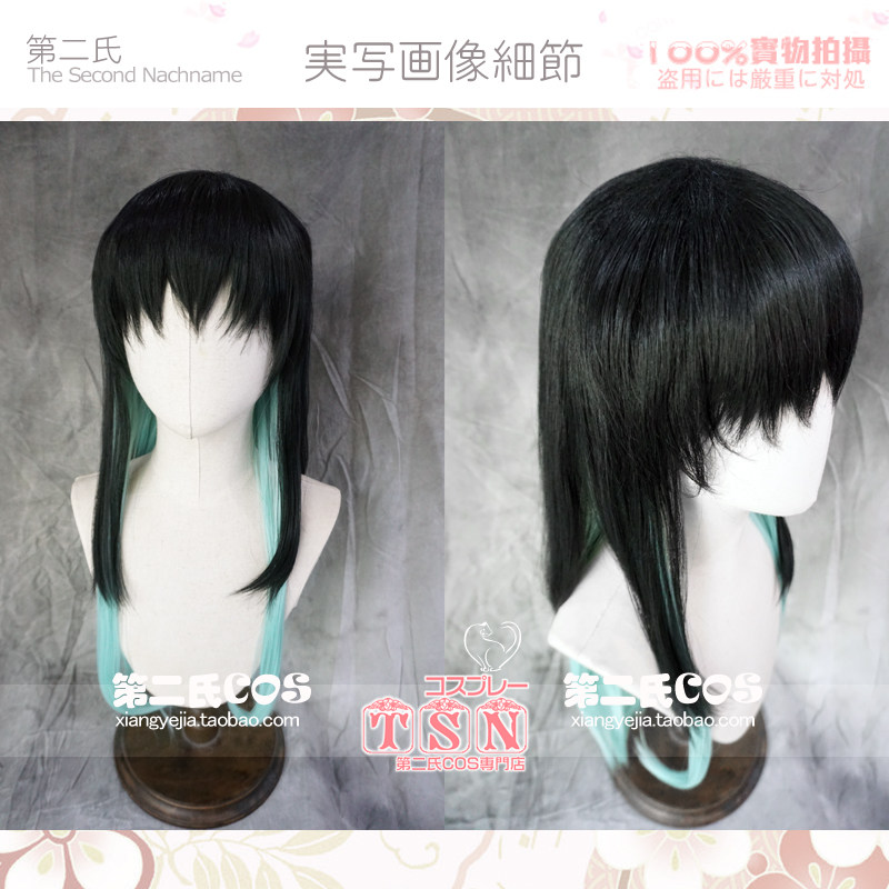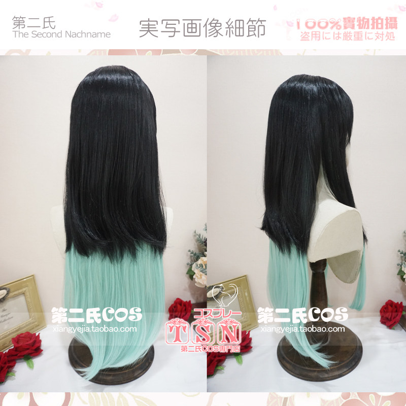 Цвет волос натуральный черный, постепенно меняющийся на светло-зеленый. Длина челки на лысых волосах такая, как показано на картинке. Вы можете отрегулировать его, надев его наполовину. Длина около 75 см.