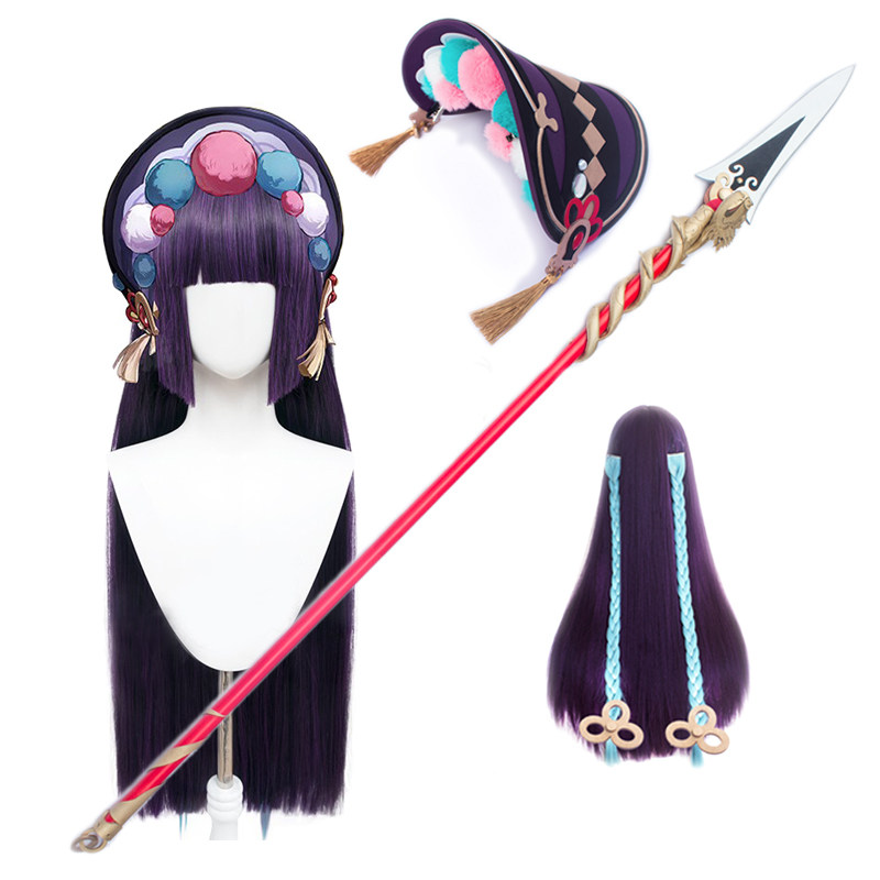 Genshin Impact, парик с косичкой, аксессуар для волос, шапка, оружие, косплей