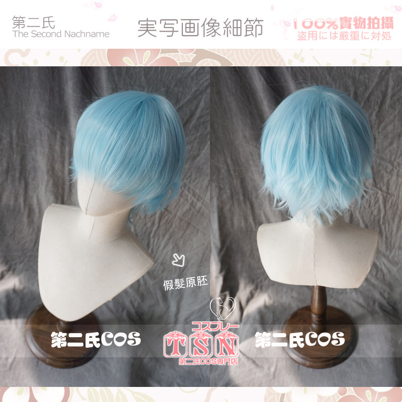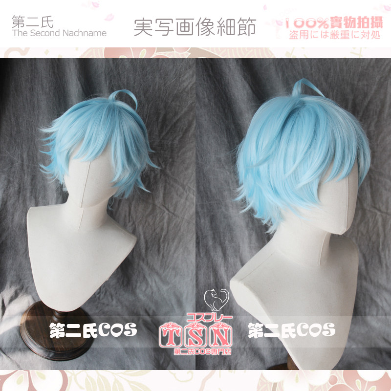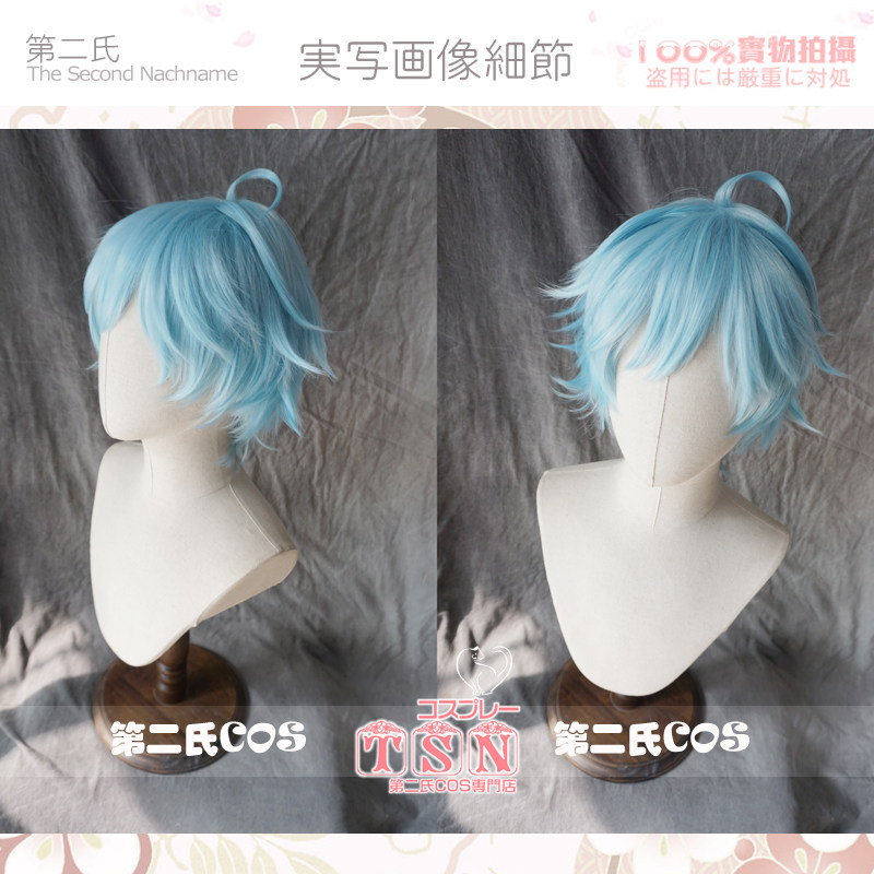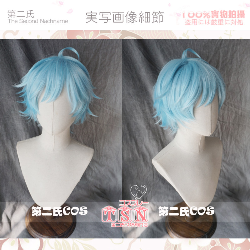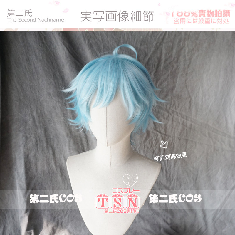 Синий парик 12 -лежащий парик короткие волосы голубые вторые семьи Чонгён Снег, синий синий анти -цао Шуай