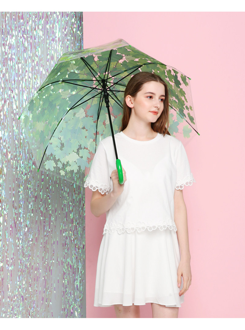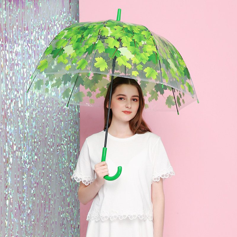 Бесплатная доставка творческая маленькая свежая листья зонтичная культура длинная ручка зеленый интентный зонтичный дерево зеленый листья днем дождь грибная девочка Сердце