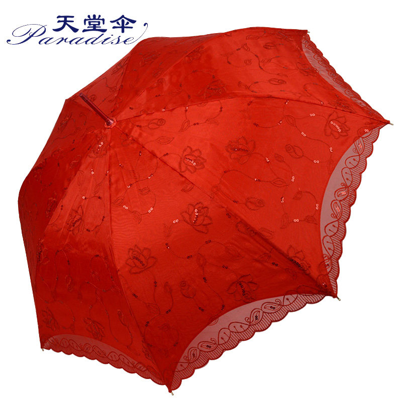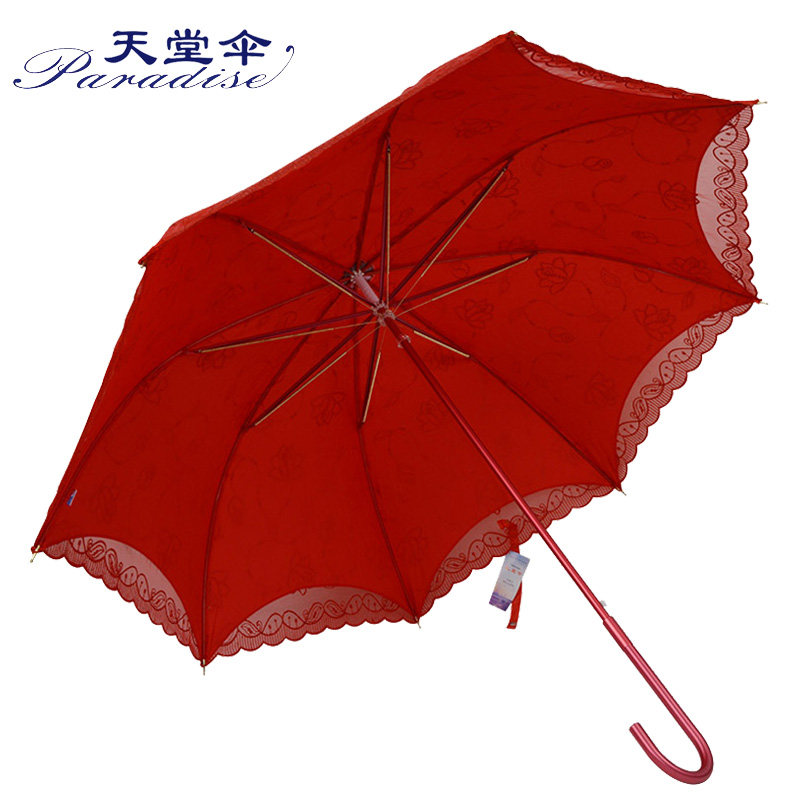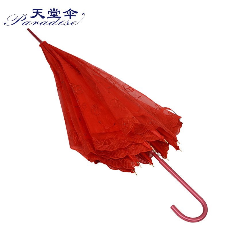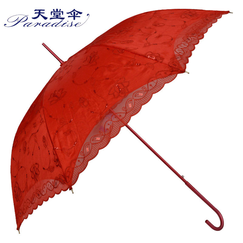 天堂 Зонтик красный зонтик красивая невеста Свадебная зонтик Hiway Umbrella Sequin Вышитый кружев