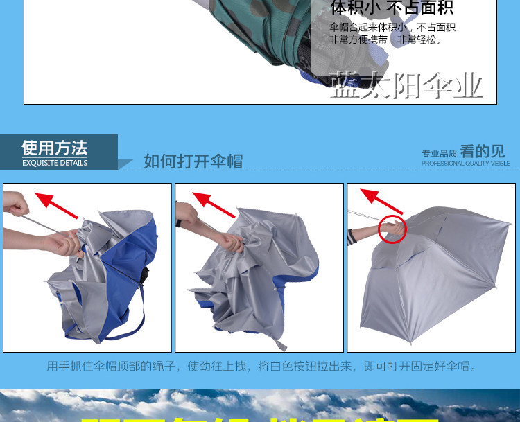 Зонтичная шляпа на голове, в зонтике, солнце, лобовое стекло, солнцезащитный крем, рыбацкий снаряжение склад